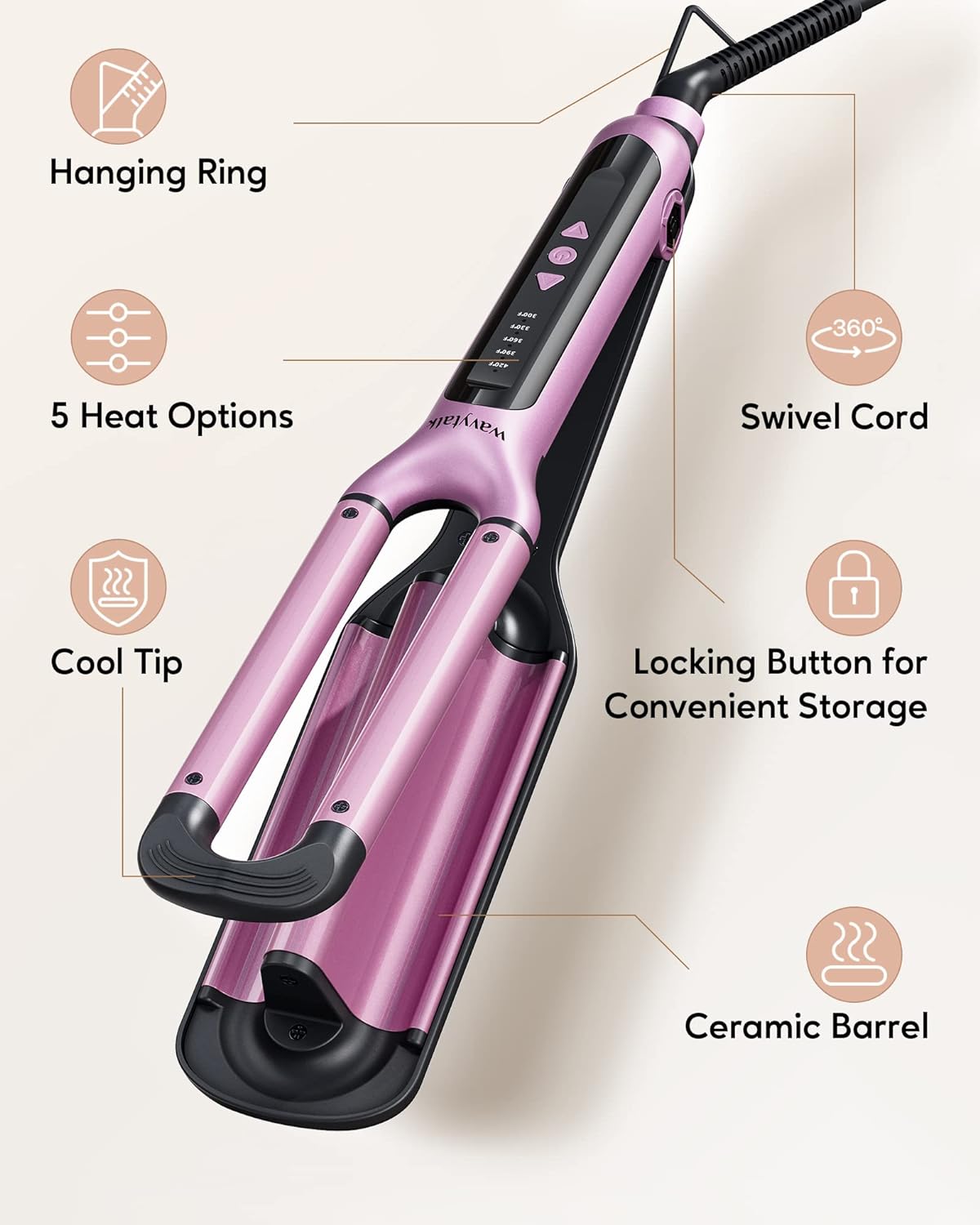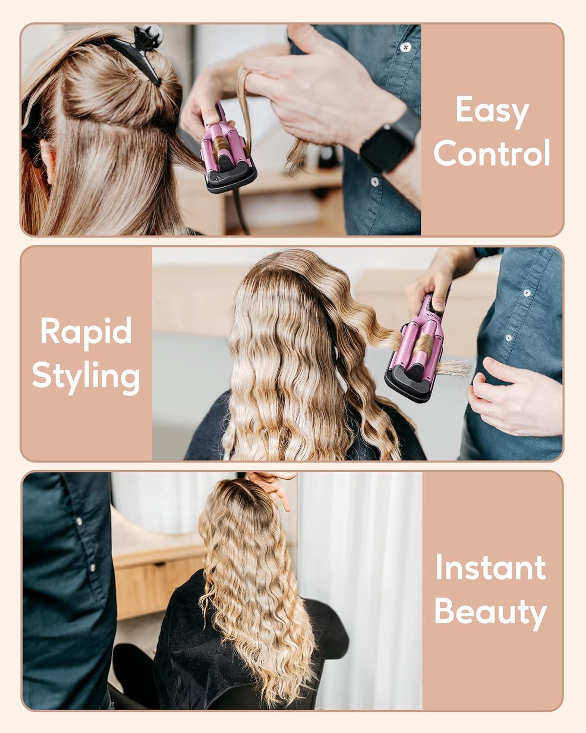 Wavytalk Beach Waves Curling Iron 3 Barrel Deep Hair Waver Hair Crimper